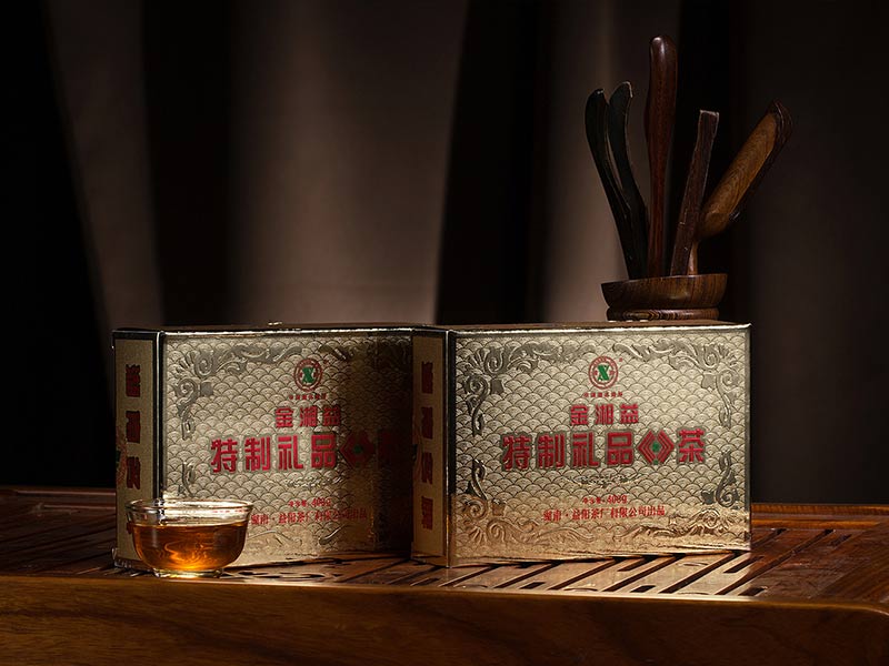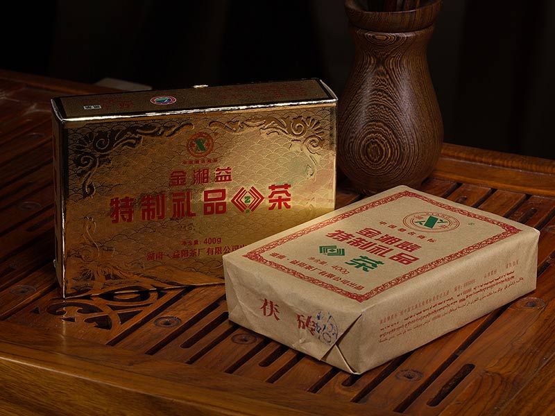 2002年,我公司通過(guò)改進(jìn)生產(chǎn)工藝和技術(shù)設備,研制開(kāi)發(fā)了“金湘益”特制禮品茯茶。該產(chǎn)品采用優(yōu)質(zhì)黑毛茶為原料,科學(xué)精制而成,具有形美、質(zhì)佳、味香、金花普茂、滋味醇和的特點(diǎn)。