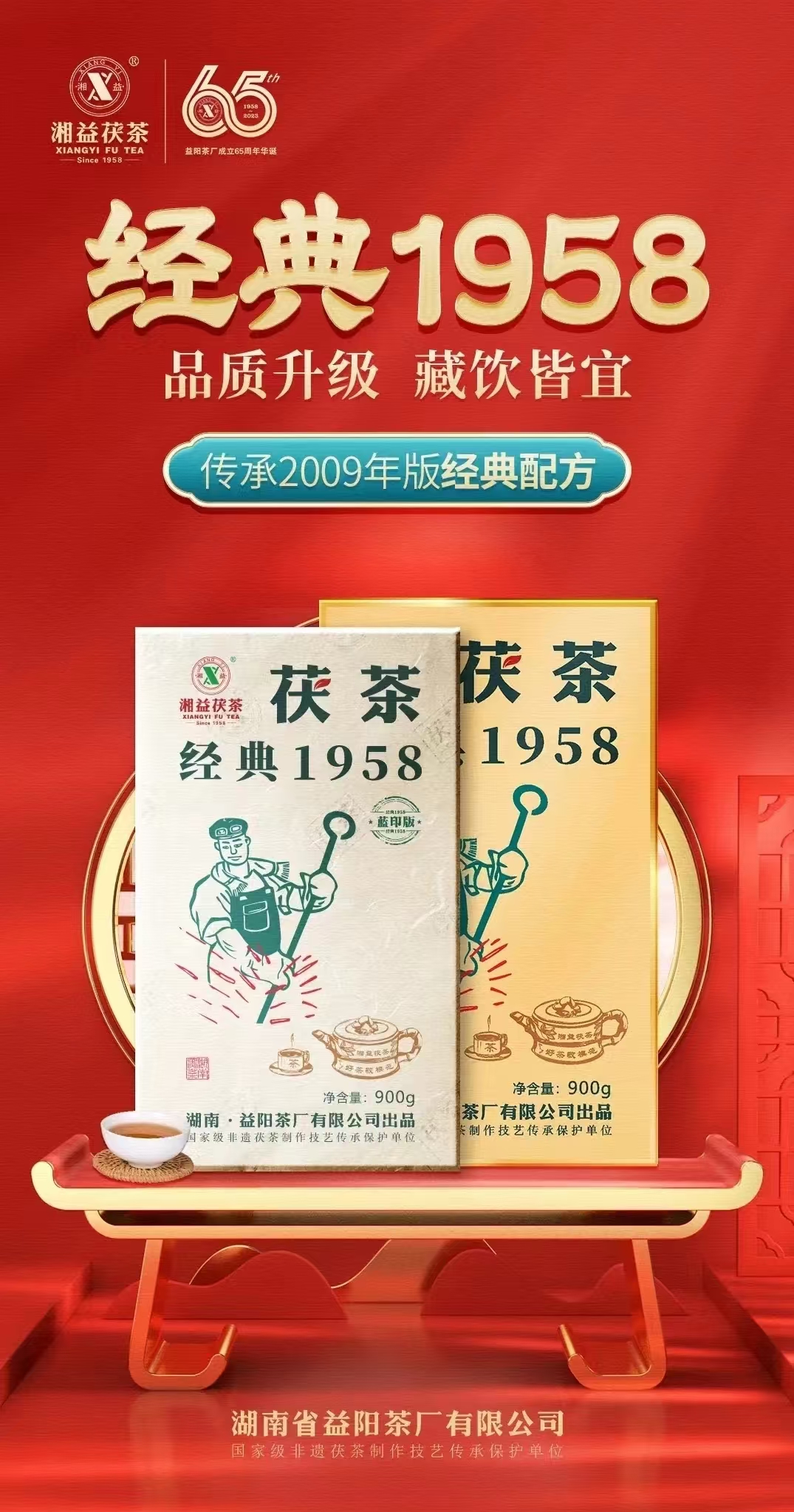 產(chǎn)品名稱(chēng):經(jīng)典1958(藍?。?br /> 茯茶規格:900g/盒 ,15盒/件