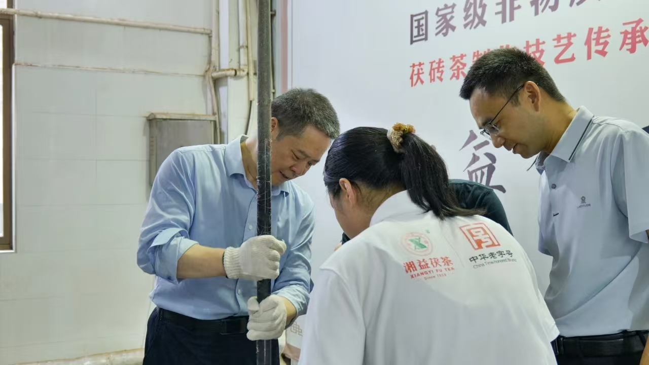 5 月 20 日,益陽(yáng)市茶葉學(xué)會(huì )組織的2025年茶葉精深加工體驗系列活動(dòng)在益陽(yáng)茶廠(chǎng)有限公司隆重舉行,本次活動(dòng)以“非遺傳承?手筑茯香” 為主題。作為國家級非遺茯磚茶制作技藝唯一傳承保護單位,益陽(yáng)茶廠(chǎng)以沉浸式非遺體驗為核心,特邀國家級非遺傳承人劉杏益大師全程指導,吸引了眾多愛(ài)茶人士深度參與。公司董事長(cháng)彭雄根、總經(jīng)理余智勇、黨委書(shū)記兼常務(wù)副總經(jīng)理徐迪軍、副總經(jīng)理郝建等領(lǐng)導出席活動(dòng),與來(lái)賓共襄非遺文化傳承盛舉。